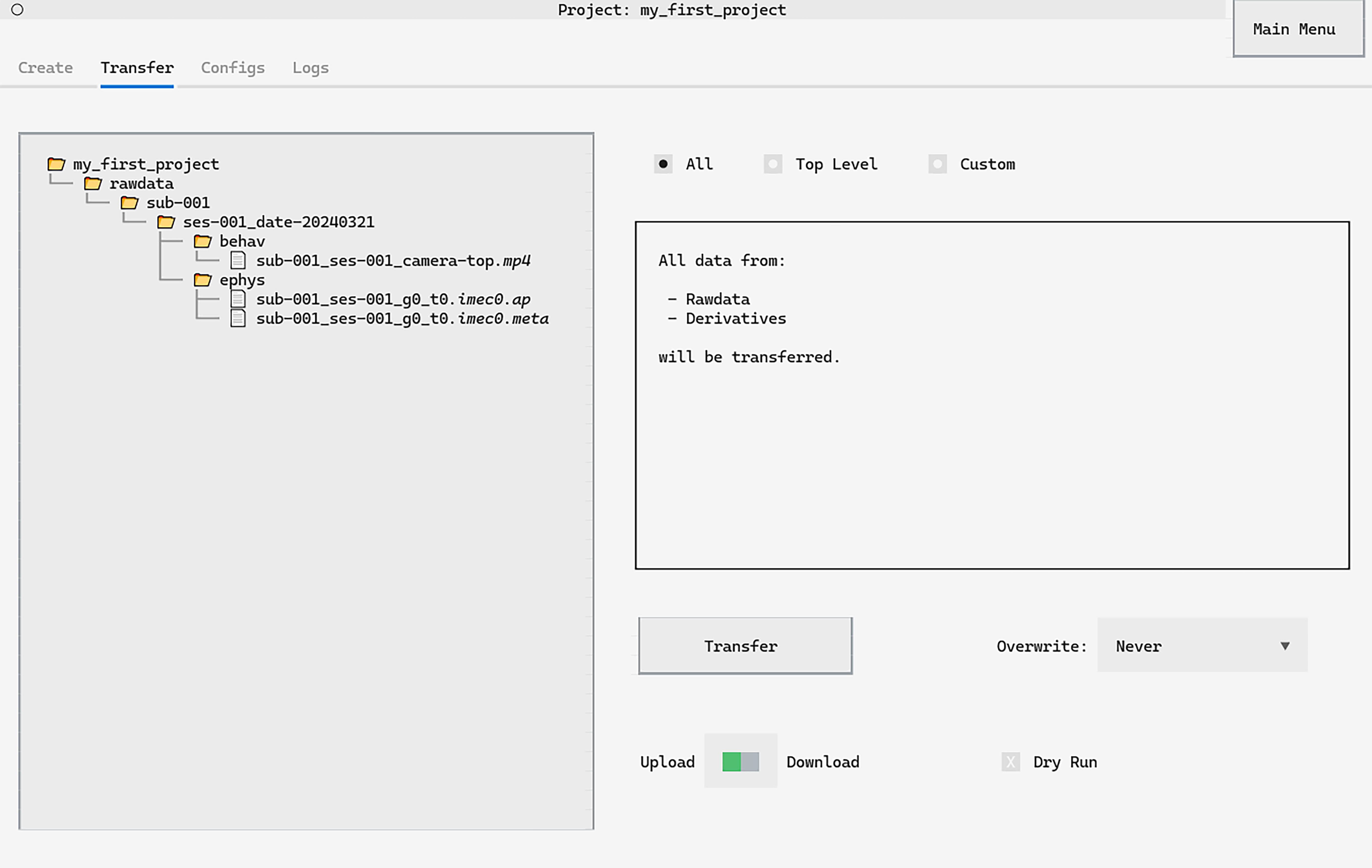 datashuttle TUITUI: Terminal User Interface | Works cross-platform, including on HPC