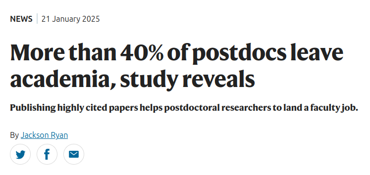 Those who stayed and landed a coveted faculty position were more likely to have had a highly cited paper, changed their research topic between their PhD and postdoc, or moved abroad after receiving their doctorate. 1